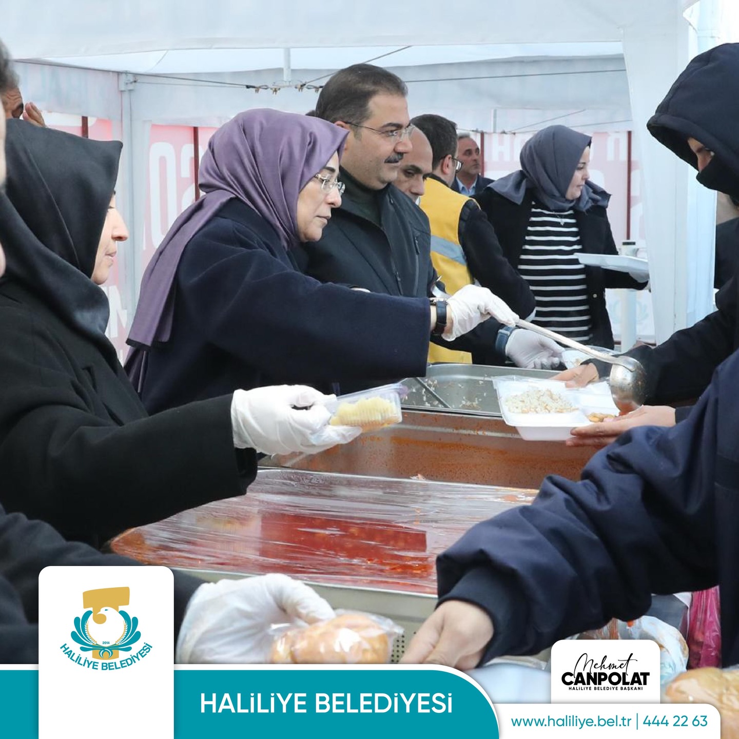 Haliliye Belediyesi tarafından Necmettin Cevheri Parkı’nda kurulan iftar çadırı, Ramazan ayının manevi atmosferinde yüzlerce vatandaşı bir araya getirmeye devam ediyor. Haliliye Belediye Başkanı Mehmet Canpolat ve AK Parti Şanlıurfa Milletvekili Cevahir Asuman Yazmacı da yemek dağıtımına katılarak vatandaşlarla sohbet etti. Progama Başkan Mehmet Canpolat’ın eşi Fethiye Canpolat da katılarak vatandaşlarla yemek dağıttı. Birlik ve beraberliğin pekiştiği iftar programında Ramazan’ın paylaşma ve dayanışma ruhu bir kez daha yaşandı.